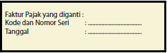 Pada Faktur Pajak Pengganti sebagaimana dimaksud pada butir 1, dibubuhkan cap yang mencantumkan Kode dan Nomor Seri serta tanggal Faktur Pajak yang diganti tersebut. Pengusaha Kena Pajak dapat membuat cap tersebut seperti contoh berikut.